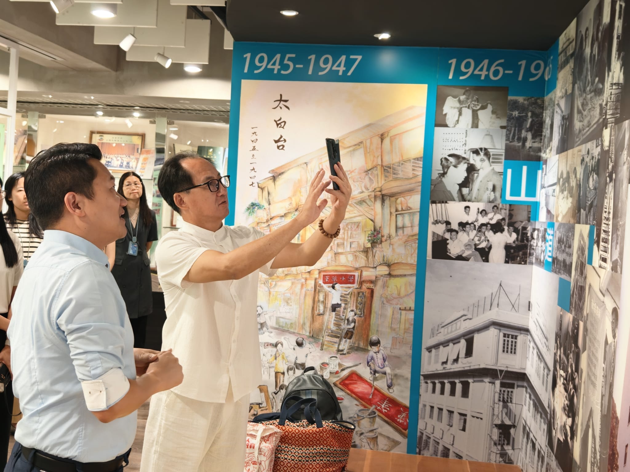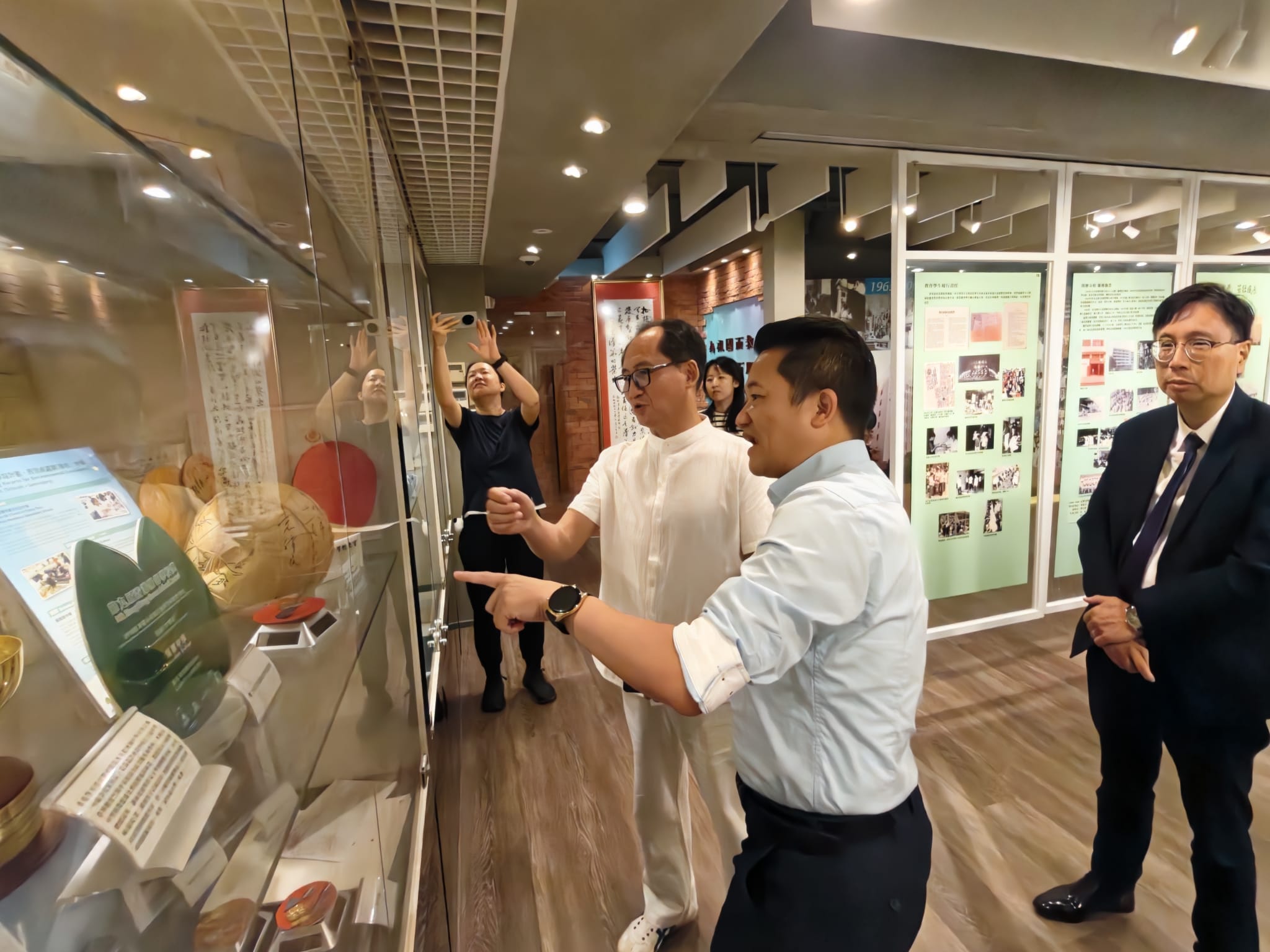 漢華中學(xué)創(chuàng)立於1945 年12月,是首間在香港創(chuàng)辦的傳統(tǒng)愛國(guó)學(xué)校,今年迎來(lái)80周年慶典。分享會(huì)開始前,校長(zhǎng)關(guān)頴斌與多名老師陪同衣向東參觀了該校的校史室。