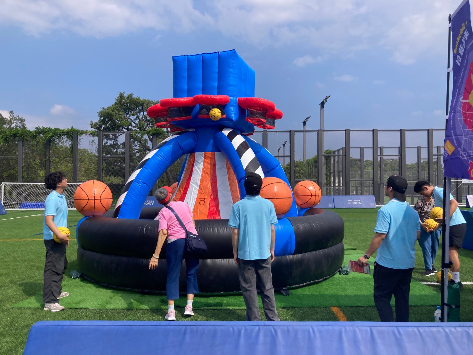 現(xiàn)場設(shè)置的30個特色攤位涵蓋匹克球、擊劍、旱地冰壺等潮流項(xiàng)目與傳統(tǒng)運(yùn)動,搭配充氣城堡、小食彩繪、魔術(shù)表演等互動體驗(yàn),適配不同年齡層市民參與。現(xiàn)場攤位前都排起隊(duì)伍,有同鄉(xiāng)相約參與,有一家大小出席,個個都玩得開心又盡興。