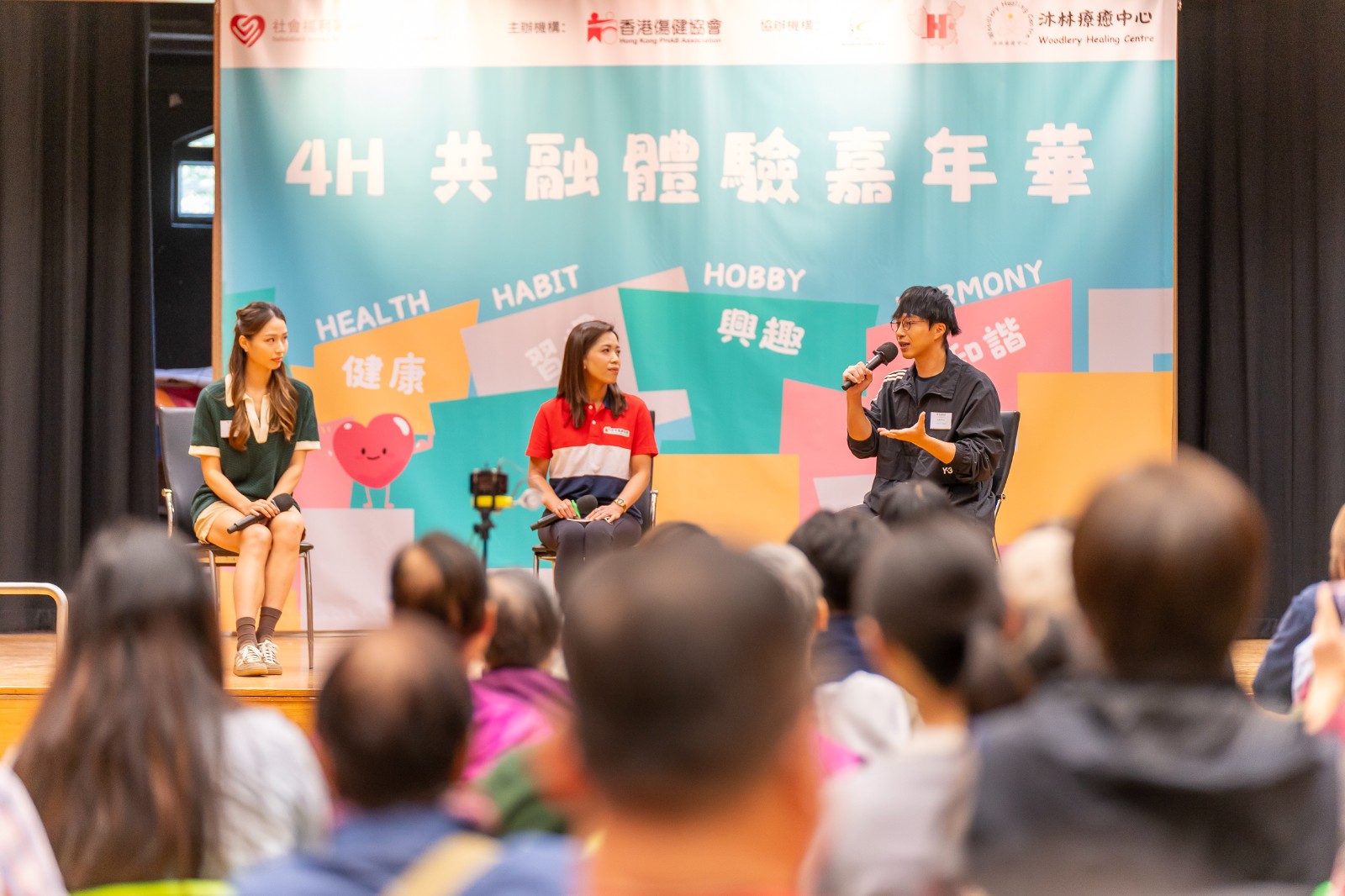 知名運(yùn)動(dòng)員馬詠茹女士、歌手及運(yùn)動(dòng)員吳業(yè)坤先生在對(duì)談中分享保持身心健康的經(jīng)驗(yàn)。