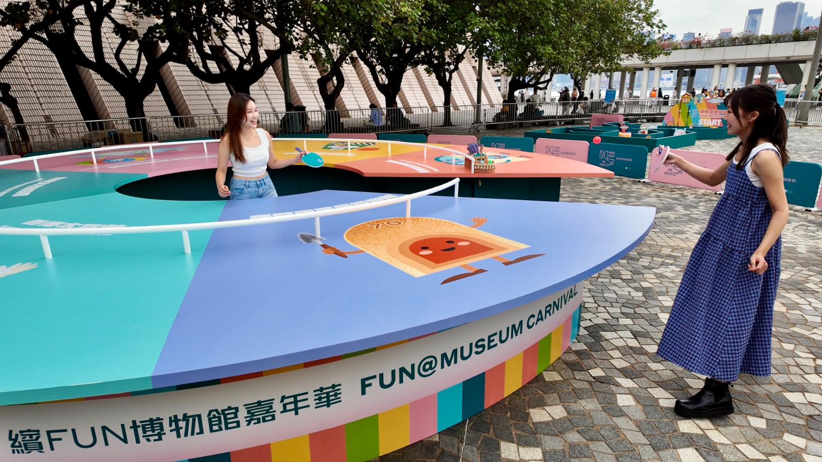 為博物館節(jié)打響頭炮的是今、明兩日(十一月一及二日)在尖沙咀香港文化中心露天廣場及市集區(qū)舉行的大型戶外「繽Fun博物館嘉年華」,現(xiàn)場有豐富活動(dòng)、體驗(yàn)工作坊及舞臺表演,市民與遊客皆可免費(fèi)參與。如巨大化「棋妙博物館」桌遊,讓參與者認(rèn)識六間周年紀(jì)念博物館的歷史和特色,還有可多人同時(shí)對戰(zhàn)的「『乒』紛大對戰(zhàn)」、變種冰球新體驗(yàn)「旱地冰球總動(dòng)員」、集體創(chuàng)作Muse Fest街頭畫「一人一筆接龍大派對」、製作個(gè)人專屬復(fù)刻報(bào)「復(fù)古街拍照相館」及多個(gè)主題打卡點(diǎn)。