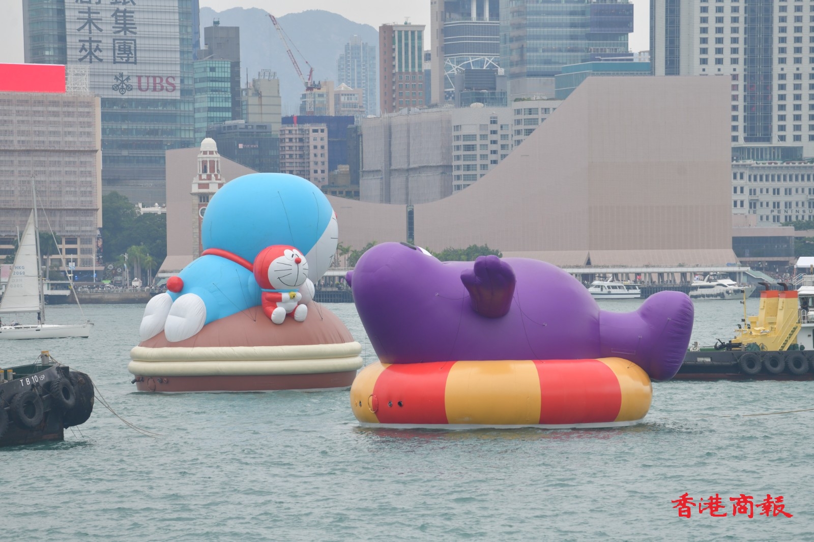多啦A夢、KAWS & 芝麻街(Elmo)、滑嘟嘟及LABUBU四座巨型海上充氣雕塑展示8日以來,已吸引成千上萬市民旅客前來駐足觀賞打卡,今日更組成「夢幻艦隊(duì)」,於下午2時啟航,依次駛離金鐘添馬公園對開海域,巡遊維港兩岸兩圈,歷時逾3小時,為香港獻(xiàn)上一場前所未見的海上藝術(shù)盛典。