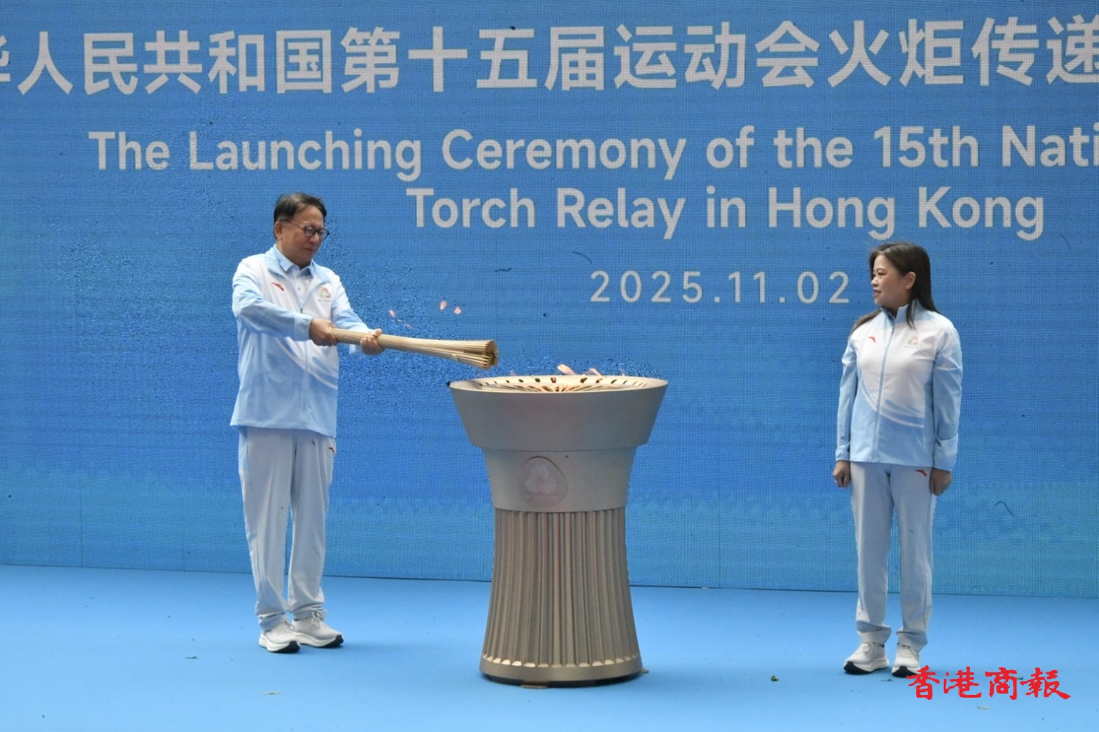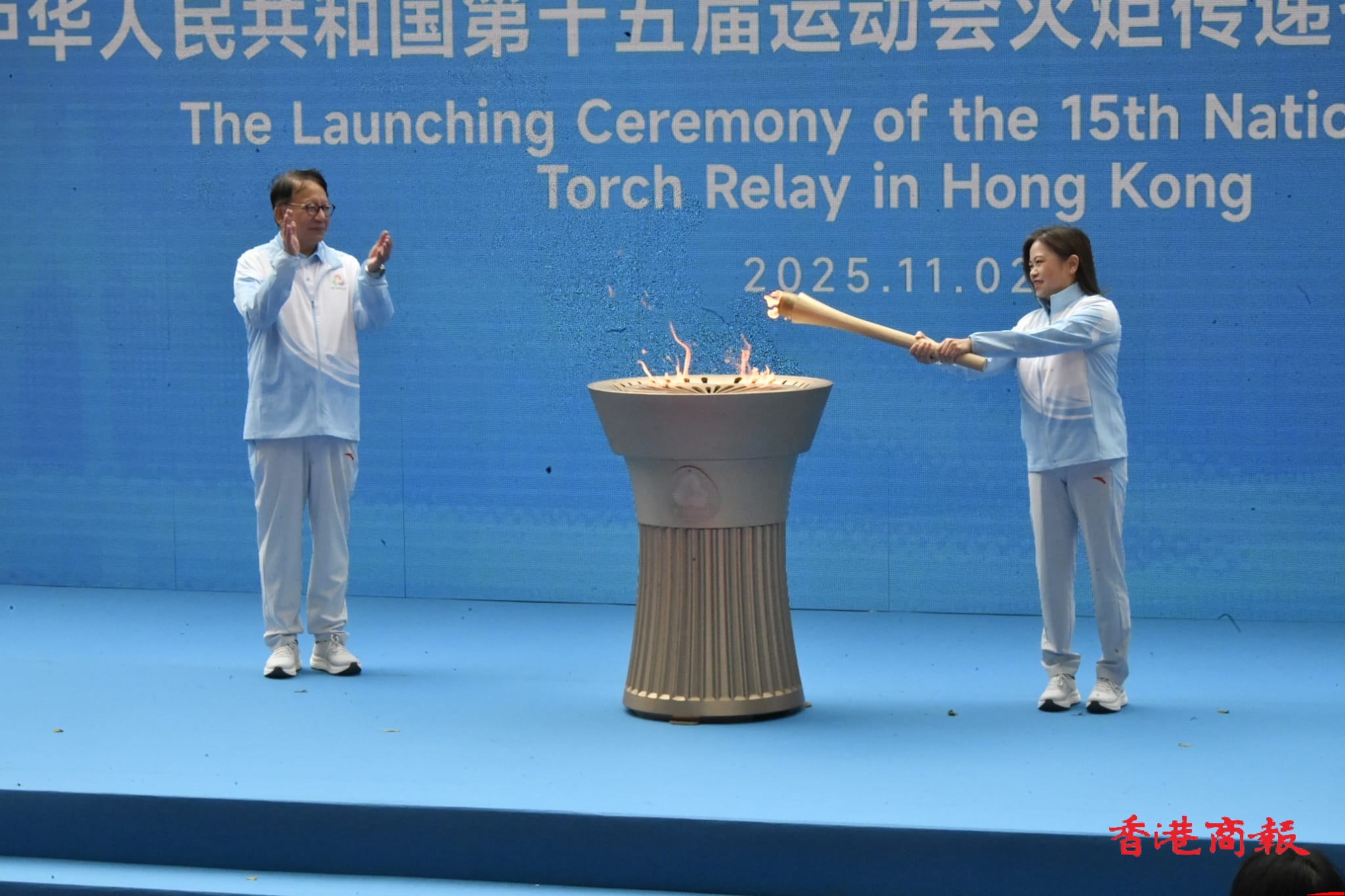 第十五屆全運(yùn)會(huì)火炬?zhèn)鬟f香港站收火儀式。