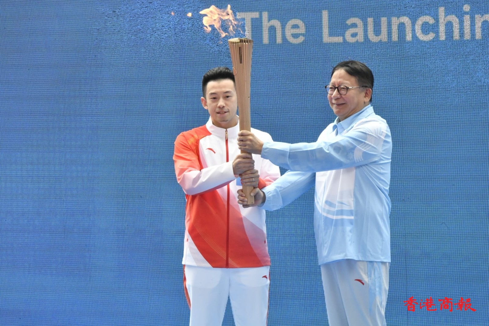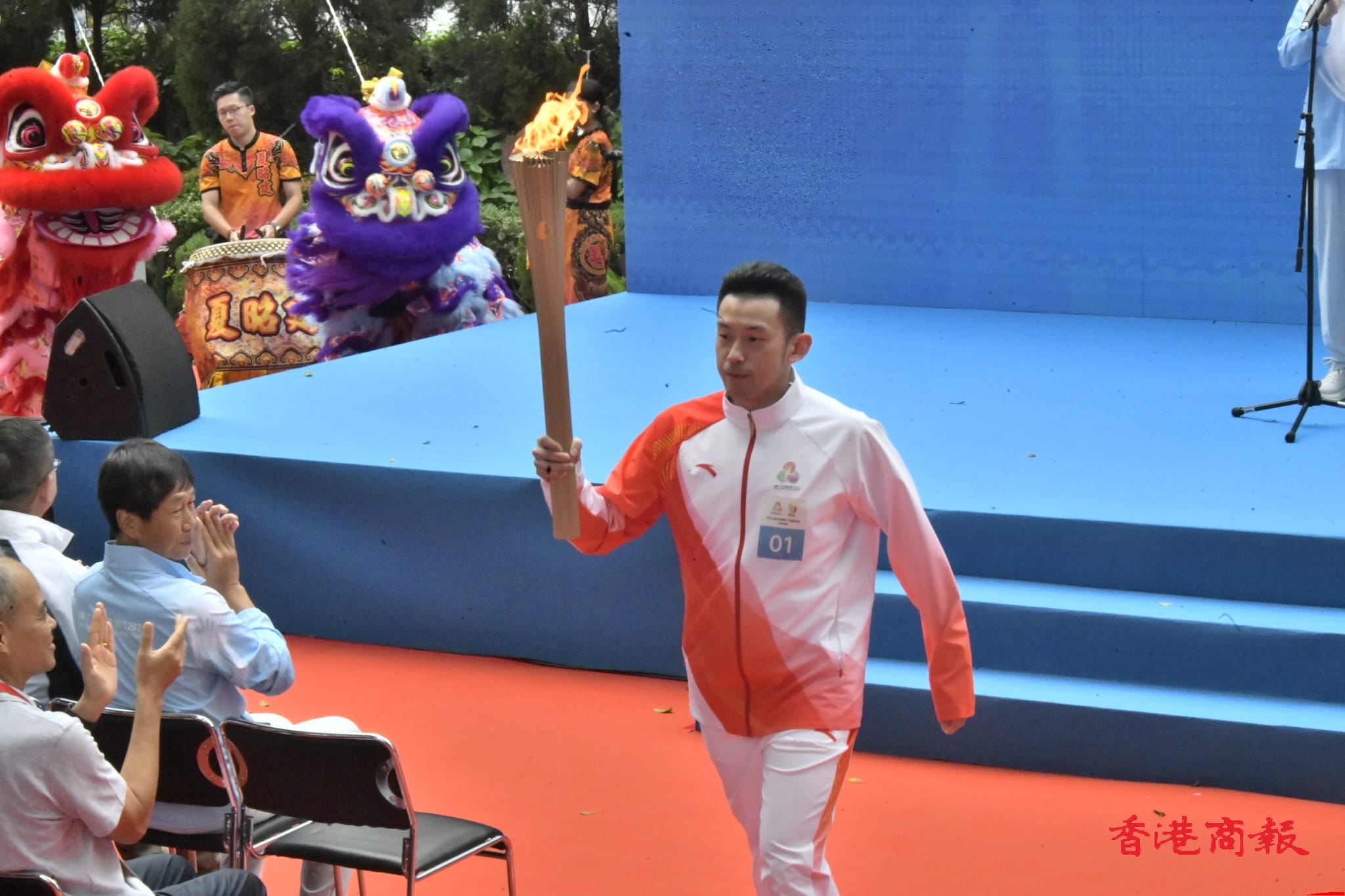 羅淑佩之後點(diǎn)燃火種盤,並由陳國(guó)基點(diǎn)燃火炬,他之後將火炬交予第一棒的火炬手港隊(duì)男子乒乓代表黃鎮(zhèn)廷,陳國(guó)基並宣布火炬?zhèn)鬟f開始。