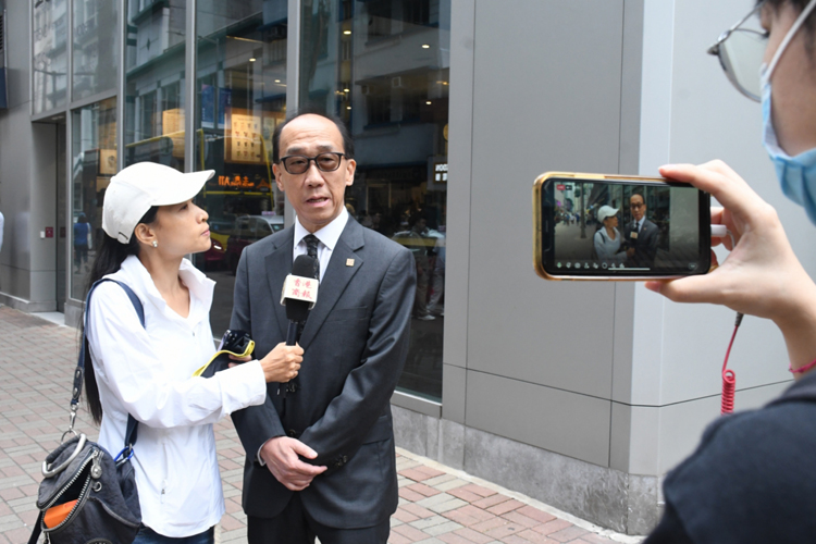 今日,江旻憓交表前聯(lián)同支持者見記者,信和集團(tuán)主席黃永光、已報(bào)名參選立法會選委界別美麗華集團(tuán)首席營運(yùn)總裁陳宗彝現(xiàn)身。