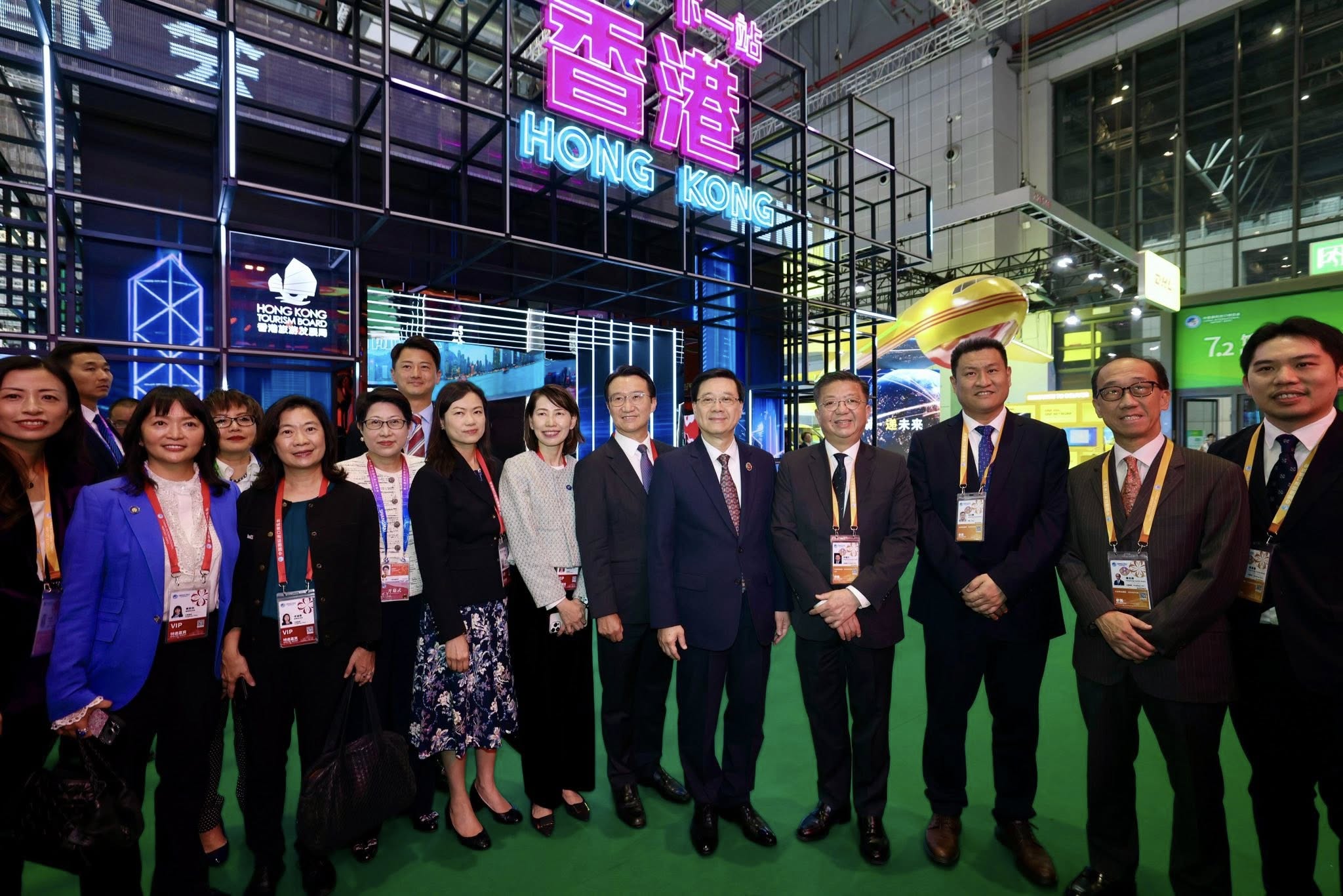 李家超今早與商務及經濟發(fā)展局局長丘應樺一同出席進博會暨虹橋國際經濟論壇開幕式,並參觀國家展中國館香港展示區(qū)。他感謝國家支持香港參與進博會,以及商務部再次在國家館設置香港展區(qū),充分突顯香港是國家整體發(fā)展的重要部分。
