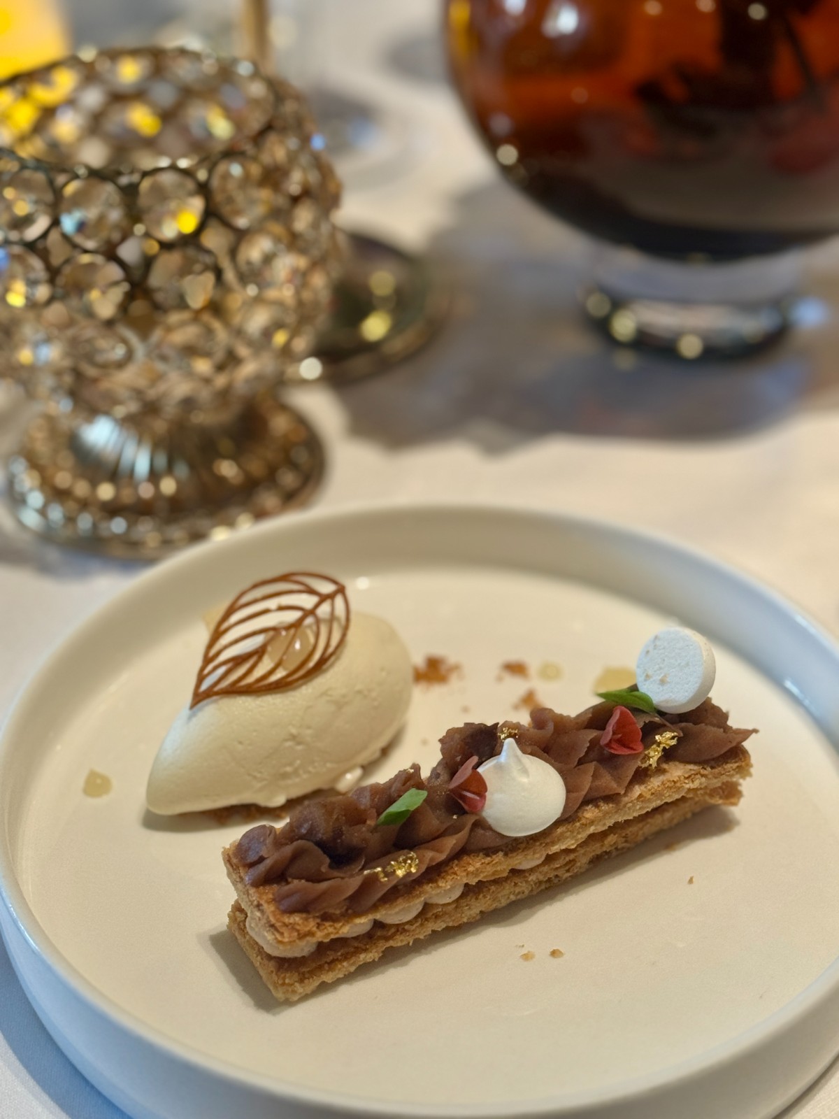 除酒吧外,在這座歐陸建築風(fēng)格還有多元的餐飲體驗(yàn)。想品嘗本地食物,推介Cafe BAU,團(tuán)隊(duì)於今年9月正式進(jìn)駐「1881公館」及LUMA,自灣仔店開業(yè)至今,已連續(xù)2年獲米芝蓮?fù)平?。不單是一家結(jié)合「農(nóng)場(chǎng)到餐桌 (Farm to Table)」概念的餐廳,還是一個(gè)推廣及支持本地食材的平臺(tái)。由「廚魔」梁經(jīng)倫Alvin夥拍主廚陳嘉賢(Kasey Chan)聯(lián)手打造,餐廳以創(chuàng)新理念演繹本地食材。如選用香港百年品牌「八珍」甜醋烹製的豬腳薑,搭配初生蛋、薯蓉與糖薑,風(fēng)味濃郁富懷舊情懷;紅蝦意粉則採(cǎi)用手工蝦籽麵,以本地蝦米油炮製,搭配清新柚子醬汁,層次豐富,鮮味十足。記者推介鴻運(yùn)農(nóng)場(chǎng)的平原雞,以珍貴羊肚菌、白蟻菇及二澳米入饌。最後以甜點(diǎn)蘋果千層酥作結(jié),以肉桂燜蘋果製成,搭配九龍維記牛奶製成的意式雪糕,香甜不膩,每一道菜皆體現(xiàn)對(duì)本地農(nóng)產(chǎn)的尊重與創(chuàng)新精神。