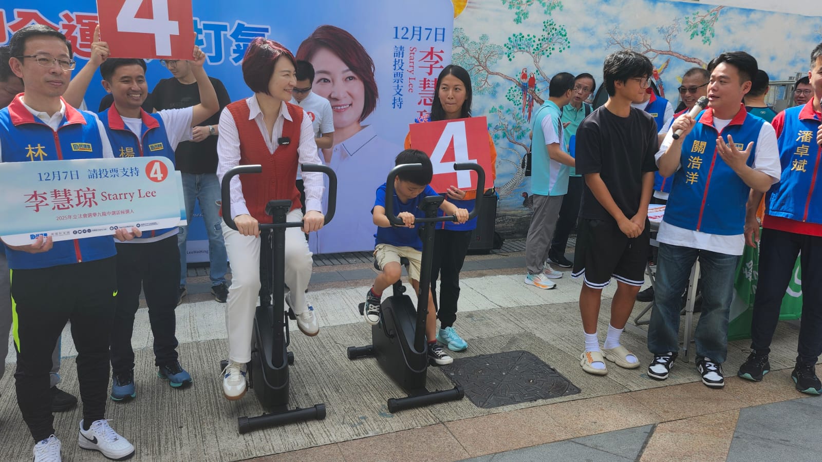 民建聯(lián)在今年立法會選舉,派出李慧瓊出戰(zhàn)九龍中選區(qū),她今日(8日)早上在土瓜灣出席競選活動,聯(lián)同團隊成員爭取市民支持,並透過單車機接力形式比賽,為香港運動員打氣,同時為候選人加油。