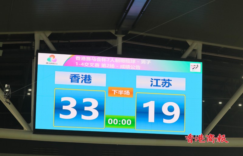 今日分組賽最後一場(chǎng)以43比5大勝內(nèi)蒙古的港隊(duì),4強(qiáng)迎鬥江蘇,上半場(chǎng)接連達(dá)陣成功,大幅領(lǐng)先21比0,江蘇上半場(chǎng)前有王桂勇破蛋,港隊(duì)上半場(chǎng)領(lǐng)先21比5。易邊後,江蘇有朱加恒達(dá)陣,加上梅子希追加射門,追近至12比21。不過港隊(duì)未有自亂陣腳,在丹馬克兩次達(dá)陣下,拉開比數(shù)至33比12,江蘇最後憑魏念浙達(dá)陣得分,結(jié)果港隊(duì)贏33比19完場(chǎng),成功打入明晚的決賽,將與山東合演冠軍戰(zhàn)。兩軍曾於周三的分組賽交手,港隊(duì)贏24比12。