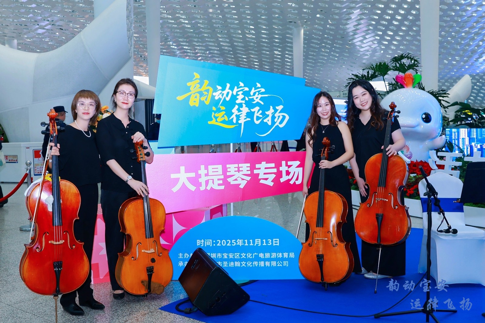 11月13日下午,深圳寶安國際機(jī)場出發(fā)大廳傳來了悠揚(yáng)的大提琴聲。南來北往的旅客紛紛駐足,融入一方沉浸式的藝術(shù)之境。為營造迎接第十五屆全國運(yùn)動會的濃厚氛圍,以文化賦能城市形象,提升城市人文氣質(zhì)和軟實(shí)力,深圳市寶安區(qū)文化廣電旅遊體育局舉辦「韻動寶安 運(yùn)律飛揚(yáng)」十五運(yùn)會主題快閃演出系列活動。