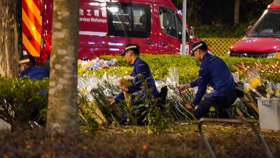 網(wǎng)民留言感謝:「見(jiàn)到民安隊(duì)員好小心、細(xì)心收拾及重新整理好鮮花,感覺(jué)他們好尊重市民及去世人士」「動(dòng)作好溫柔?!埂钢x謝民安隊(duì)隊(duì)員小心翼翼地重置鮮花,好溫柔,從這細(xì)節(jié),感受到他們對(duì)逝者嘅尊重。」「感謝每一位為大埔火災(zāi)出心出力嘅前線人員及市民,香港人都會(huì)銘記在心?!?strong>(記者 區(qū)天海)