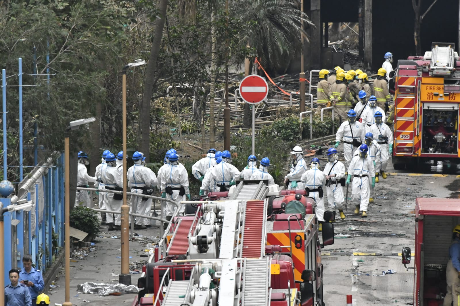 警方災(zāi)難遇害者辨認(rèn)組進入宏福苑搜索。