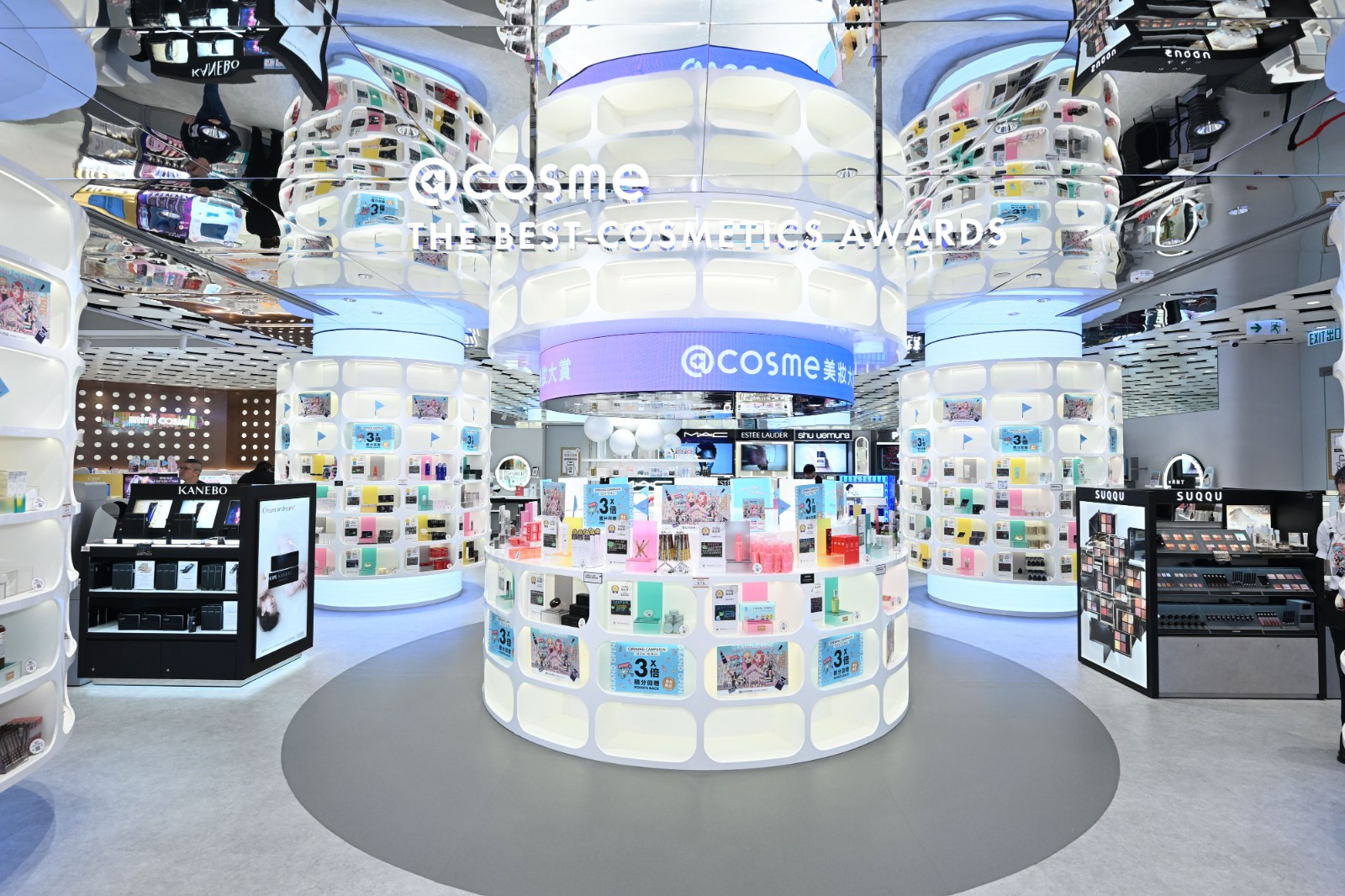 店舖恍如美妝樂園,設(shè)有不少特別區(qū)域和亮點。進入店內(nèi)、在地下G/F首先映入眼簾的便是經(jīng)典「美妝大賞區(qū)」,該區(qū)集結(jié)香港、日本消費者真實評價選出的得獎好物,種類豐富,讓人掌握美妝潮流,輕鬆搜羅到心儀產(chǎn)品。如獲得全年「Best of the Best」綜合大賞的「OLAY水感透白光曜精華 」,憑藉其有效締造水潤透亮肌,在香港消費者之間成為年度最火熱的美妝話題;獲得殿堂賞的「INNISFREE控油礦物散粉 (礦物控油碎粉)」,這款散粉是夏日油肌救星,連續(xù)3年獲得第1名或連續(xù)5年保持前3名;獲得彩妝部門賞的「LOVE LINER纖密流暢防水眼線液」筆尖纖細,可勾勒無縫順滑線條;獲得綜合賞第二名的「CeraVe長效保濕修復(fù)乳」配方輕盈,有效修護皮膚天然屏障;獲得唇彩第1名的「KATE TOKYO怪獸級持色唇膏」。專區(qū)現(xiàn)時亦展出「2025 下半年新秀賞」,讓大家率先體驗最新、最具潛力的美妝新秀產(chǎn)品,如獲得下半年新秀去角質(zhì)部門的「SOFINA iP 水光去角質(zhì)碳酸慕絲精華」溫和軟化並去除老廢角質(zhì),提升後續(xù)保養(yǎng)吸收;獲得下半年新秀賞第二位「ettusais極幼持色眼線液 01」筆身採用防震設(shè)計,可勾勒流暢且俐落線條等;下半年新秀頭皮護理部門的「YVES ROCHER 防脫豐盈精華」,有助強化無生氣的秀髮,減少脫髮及促進頭髮增生。