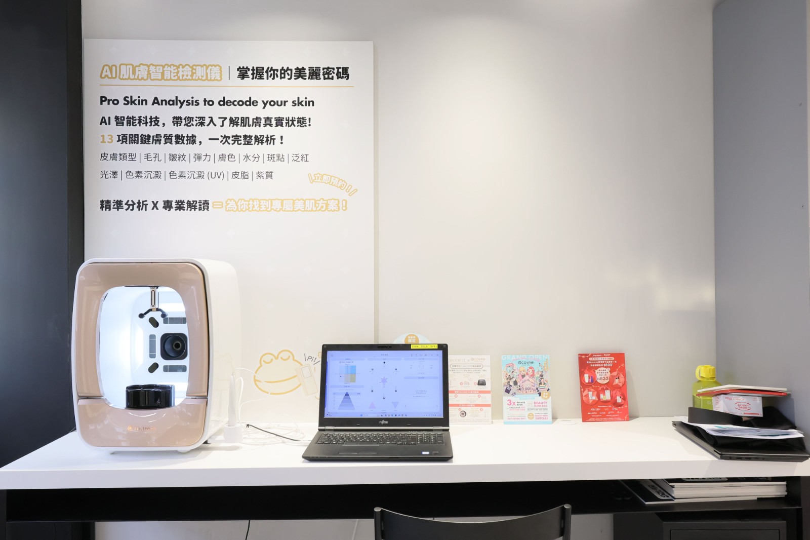 此外,2樓的「肌膚檢測區(qū)」透過先進的肌膚檢測儀器,將深入分析肌膚狀況,測試出13種肌膚狀態(tài),包括水分、油脂、彈性及膚色等多項指標,以助了解自己的肌膚需求。根據(jù)肌膚類型和問題,量身打造客製化的護膚計劃,並針對性地推薦適合的護膚產(chǎn)品。消費滿指定金額,還可於2樓免費玩必有獎的扭蛋或夾公仔機,贏取美妝贈禮。
