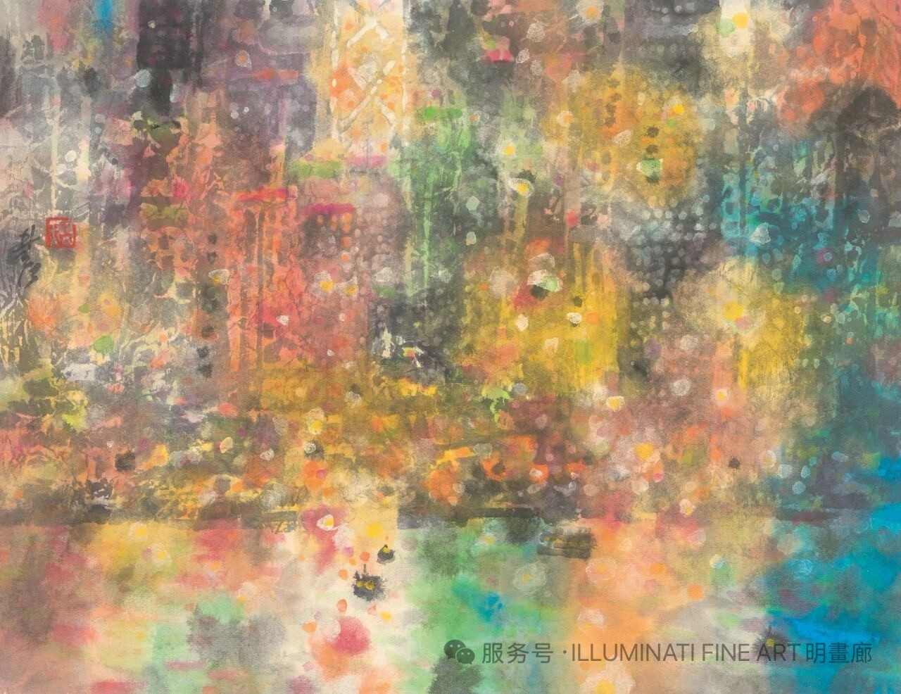 「夜。香港」以展覽名稱同名的作品《夜。香港》為重點展品,作品描繪了維港兩岸夜色,香江晚上,高樓大廈與船隻航行的燈光交映成輝,維港海面波光粼粼。作品墨韻沉著間蘊藏夜色特有的層次感,色彩斑斕中可見霓虹與萬家燈火的交織。香港知名地標在夜色中若隱若現(xiàn),雖不刻意寫實,卻能讓觀者覓得熟悉的痕跡。