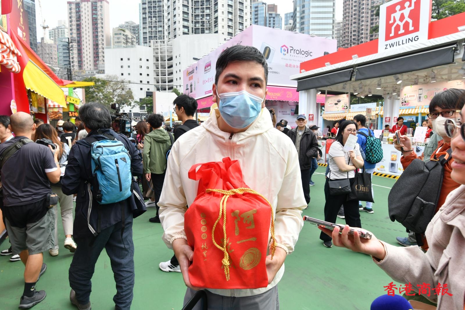 廣昌隆臘味推出1元1包臘腸,每日限量20份;1元一張價(jià)值100元的禮券,每日限量20份;10元1包臘腸,每日限30份。負(fù)責(zé)人楊先生說:「展會(huì)一開始就有約100人衝過來排隊(duì),我們就要即時(shí)數(shù)人頭截龍,2分鐘便全部賣光;對(duì)今天早上的人流非常滿意?!?/p>