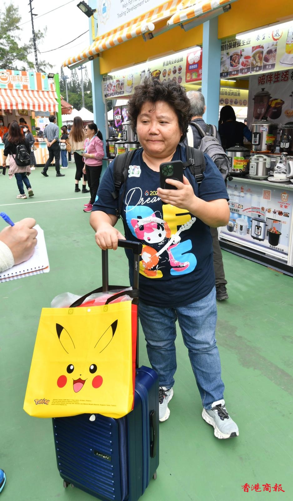 從三潘市回港的李小姐帶同行李箱來購物,她說:「主要是想回憶一下童年時(shí)的工展會(huì)。」