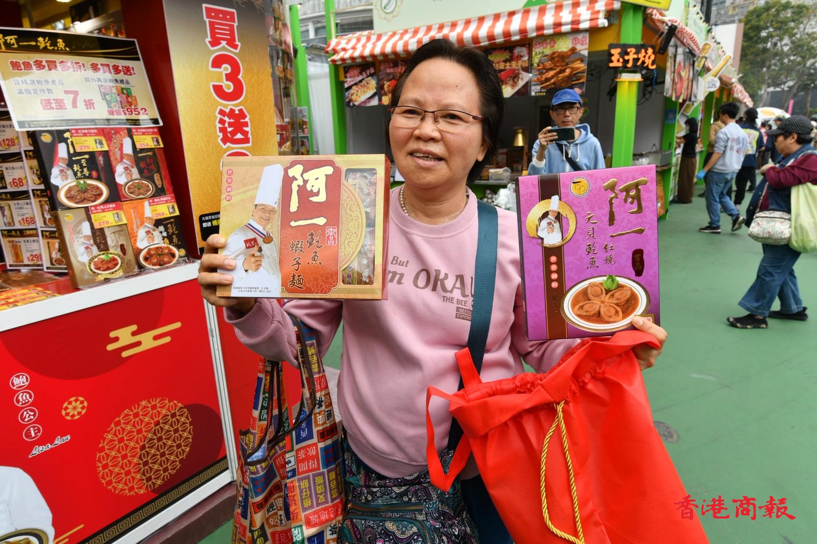 有來自沙田的萬先生與2名「老友記」一起來辦年貨,買了5000元鮑魚冬姑海味。他說:「今天雖然帶了車仔來,但明天還要來再買,展期內(nèi)會(huì)來多幾次,反正我們是長者車費(fèi)、入場(chǎng)又不用錢,來這裏可以玩一天,在展會(huì)試食又可以當(dāng)午餐?!?/p>