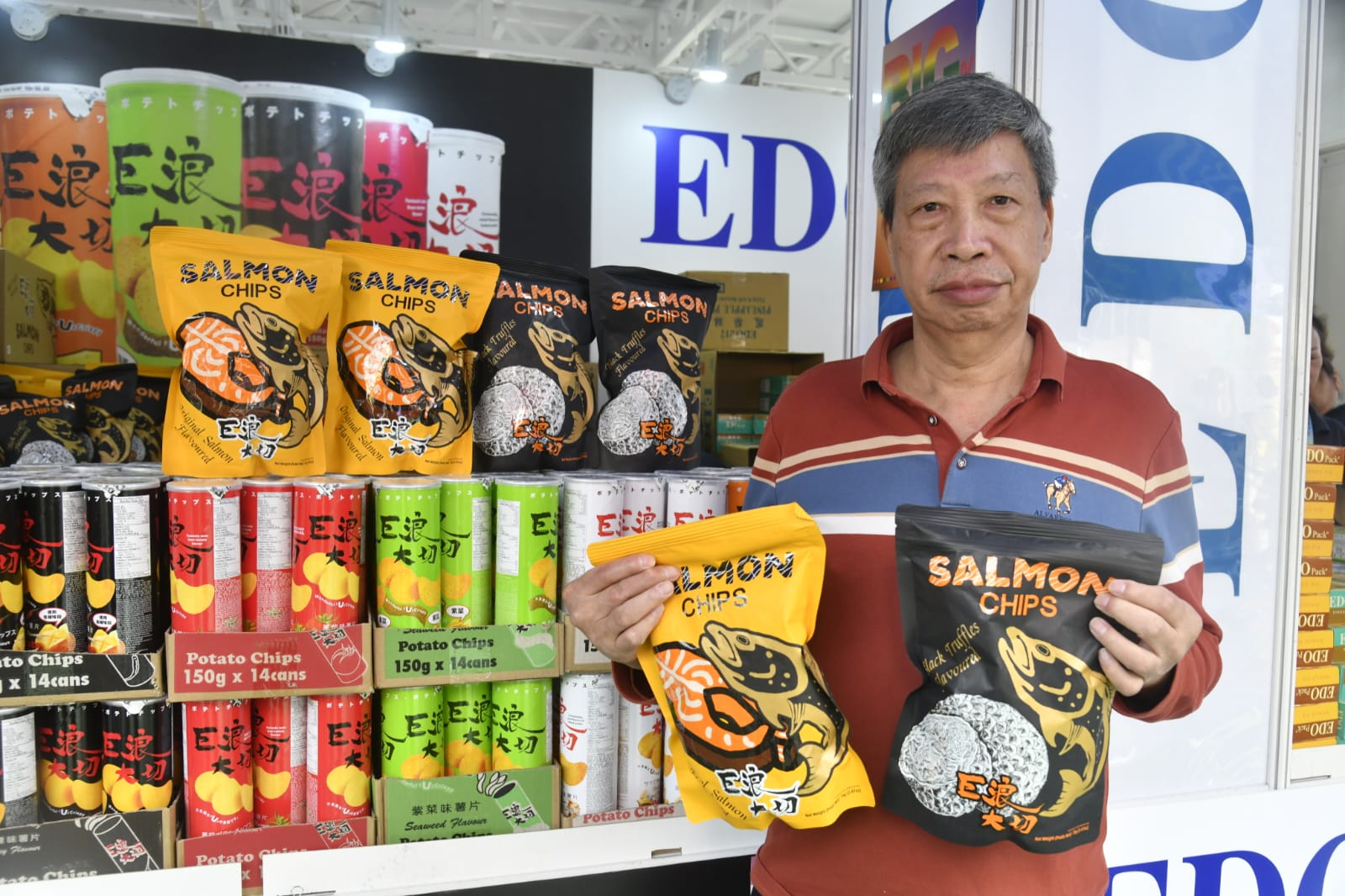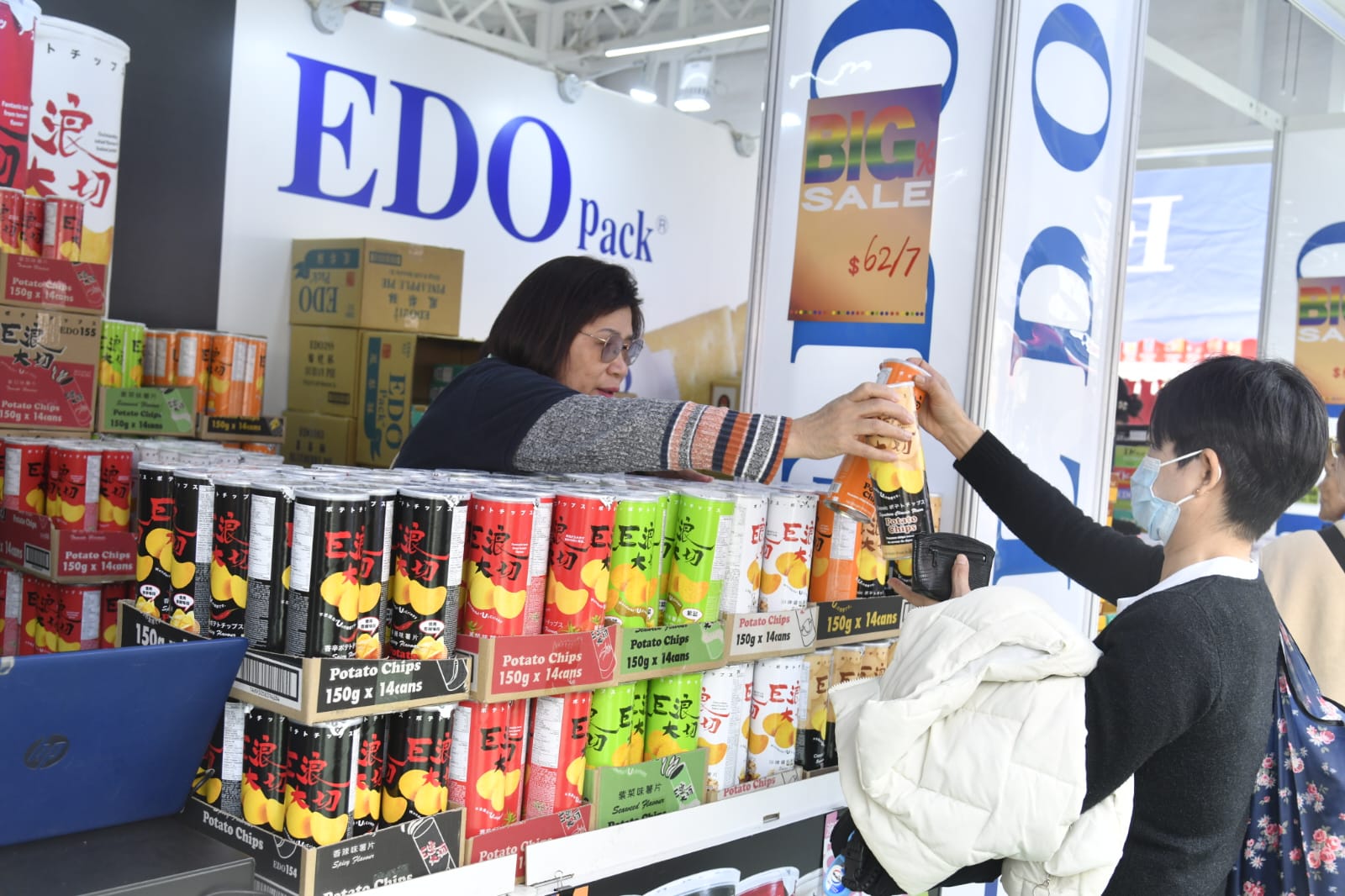 EDO貨品部經(jīng)理莊友旭認(rèn)為,今日為工展會(huì)展期第二日,銷(xiāo)售額將會(huì)比去年好,客人也願(yuàn)意消費(fèi),預(yù)料銷(xiāo)售額有10至15%增幅,今年新推出的產(chǎn)品是「巨浪大切」蝦片,包括三文魚(yú)和黑松露兩款味道,賣(mài)60元3包,而「巨浪大切」薯片則賣(mài)62元7筒,比門(mén)市賣(mài)10元一筒為便宜。