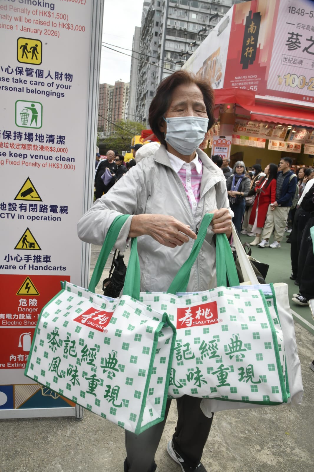 工展會(huì)設(shè)有入場(chǎng)優(yōu)惠,年滿(mǎn)65歲或以上長(zhǎng)者可以免費(fèi)入場(chǎng)。入場(chǎng)客人何太是其中一位受惠者,她向港商記者表示,用100元在壽桃的攤位買(mǎi)到3盒竹昇麵,價(jià)錢(qián)比起在超級(jí)市場(chǎng)售賣(mài)40元1盒為便宜,預(yù)算消費(fèi)1000多2000元。