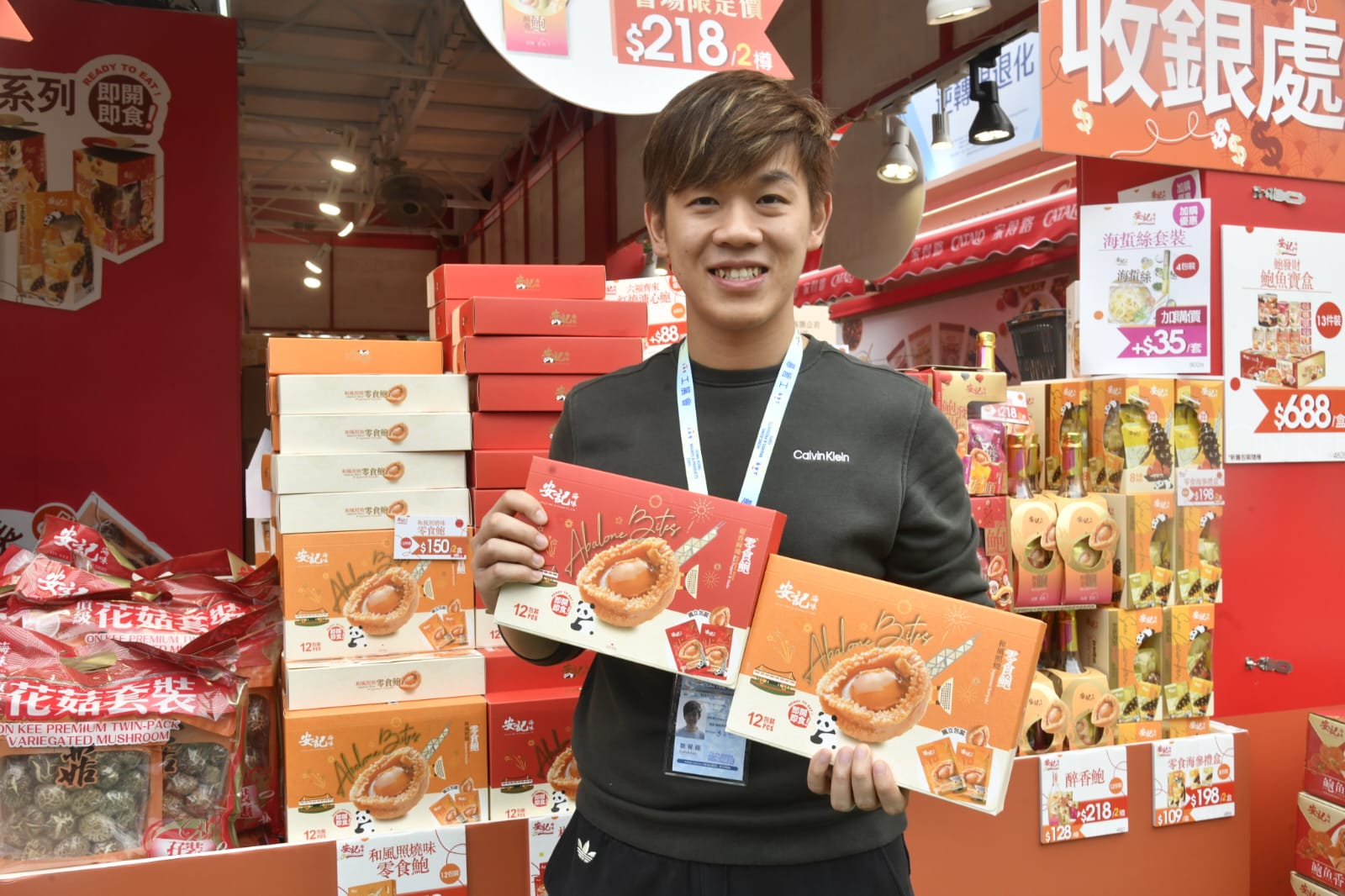 安記海味「太子爺」潘永熙表示,今天會(huì)場(chǎng)氣氛很好,和昨天相比之下,客人的消費(fèi)意欲較高,形容他們「咩都想買(mǎi)」。他不忘落力,推介新推出的皇牌產(chǎn)品零食鮑魚(yú),稱(chēng)不同年齡階層,例如年青人都會(huì)前來(lái)購(gòu)買(mǎi)回家享用。潘永熙續(xù)說(shuō),零食鮑魚(yú)150元兩盒,為工展會(huì)價(jià)錢(qián),有部分則賣(mài)198元兩盒,口味包括和風(fēng)照燒、椒香麻辣,以及港式叉燒,同樣深受客人歡迎。