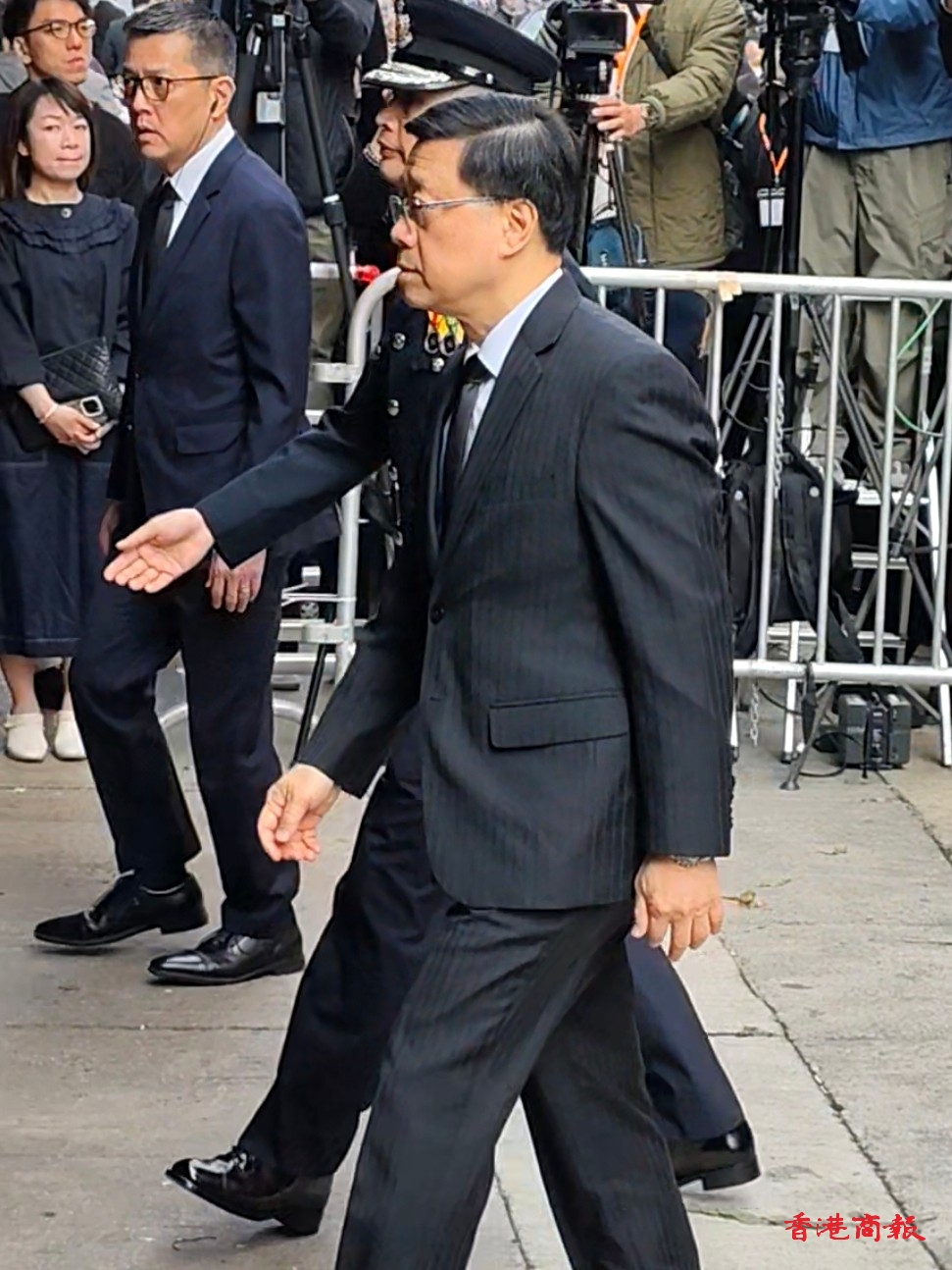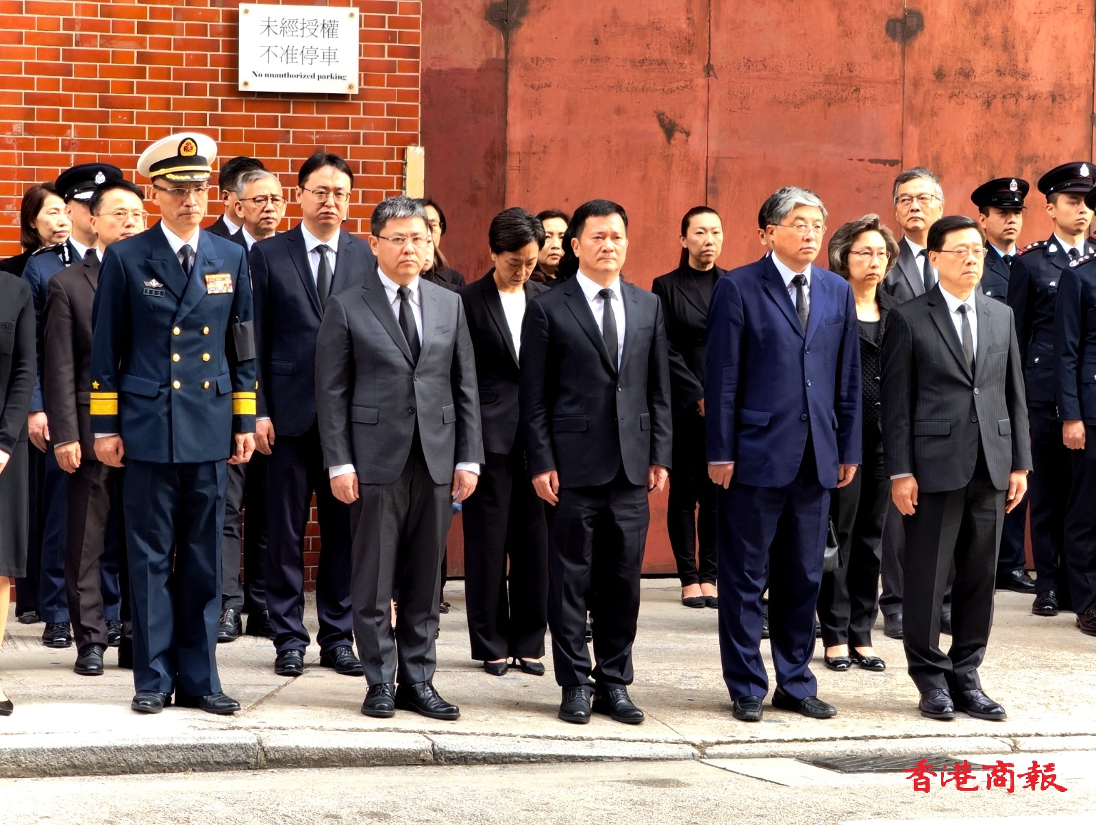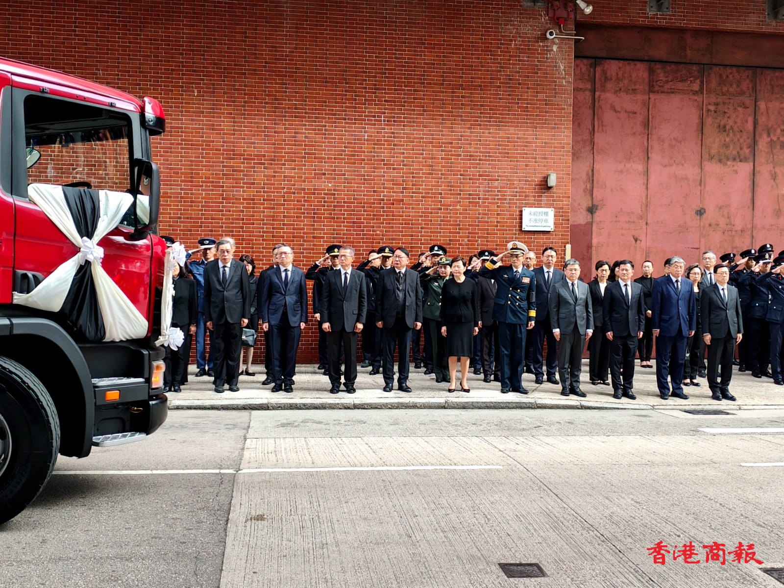 大埔宏福苑11月26日發(fā)生五級(jí)大火,造成嚴(yán)重傷亡。37歲消防員何偉豪英勇殉職,昨日(18日)於紅磡世界殯儀館設(shè)靈,消防處今日(19日)為何偉豪舉行最高榮譽(yù)喪禮。 政府主要高官到場(chǎng)致哀,包括行政長(zhǎng)官李家超、政務(wù)司司長(zhǎng)陳國(guó)基、財(cái)政司司長(zhǎng)陳茂波、律政司司長(zhǎng)林定國(guó)、醫(yī)務(wù)衞生局局長(zhǎng)盧寵茂、發(fā)展局局長(zhǎng)甯漢豪、房屋局局長(zhǎng)何永賢、民政及青年事務(wù)局局長(zhǎng)麥美娟、勞工及福利局局長(zhǎng)孫玉菡、文化體育及旅遊局局長(zhǎng)羅淑佩等人;多名紀(jì)律部隊(duì)首長(zhǎng)均有出席,包括保安局局長(zhǎng)鄧炳強(qiáng)、保安局常任秘書(shū)長(zhǎng)李百全、保安局副局長(zhǎng)卓孝業(yè)、警務(wù)處處長(zhǎng)周一鳴、消防處處長(zhǎng)楊恩健等;全國(guó)政協(xié)副主席梁振英夫婦、前行政長(zhǎng)官曾蔭權(quán)及林鄭月娥、立法會(huì)主席梁君彥及行政會(huì)議召集人葉劉淑儀等人亦有出席。