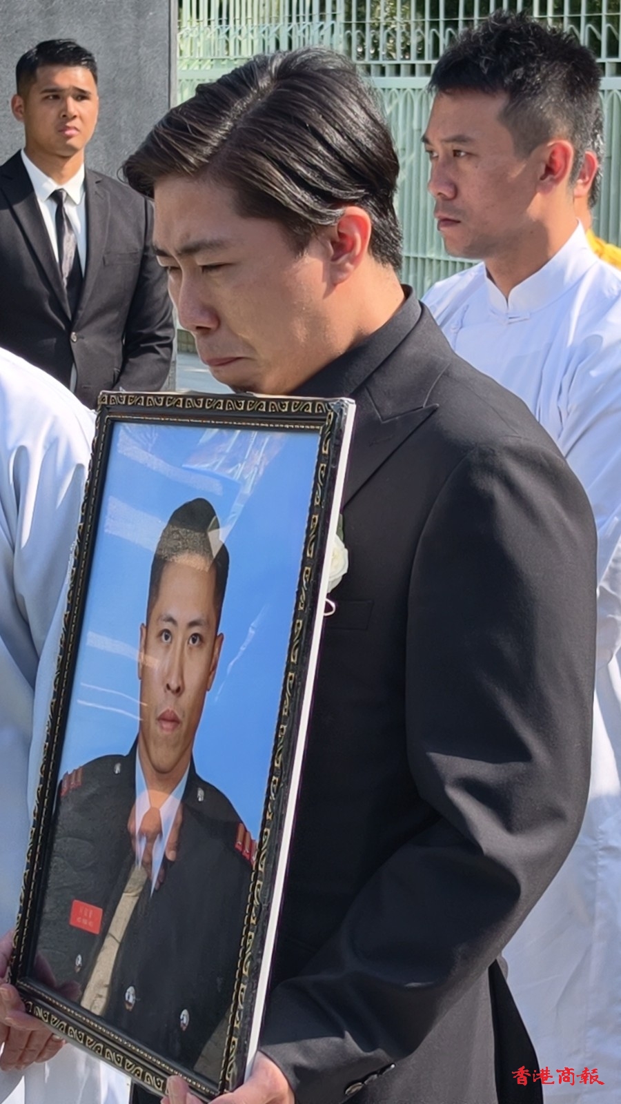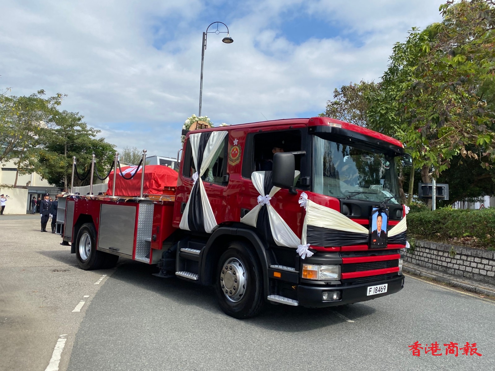 何偉豪靈柩抵達(dá)沙田消防局。記者 李銘欣攝