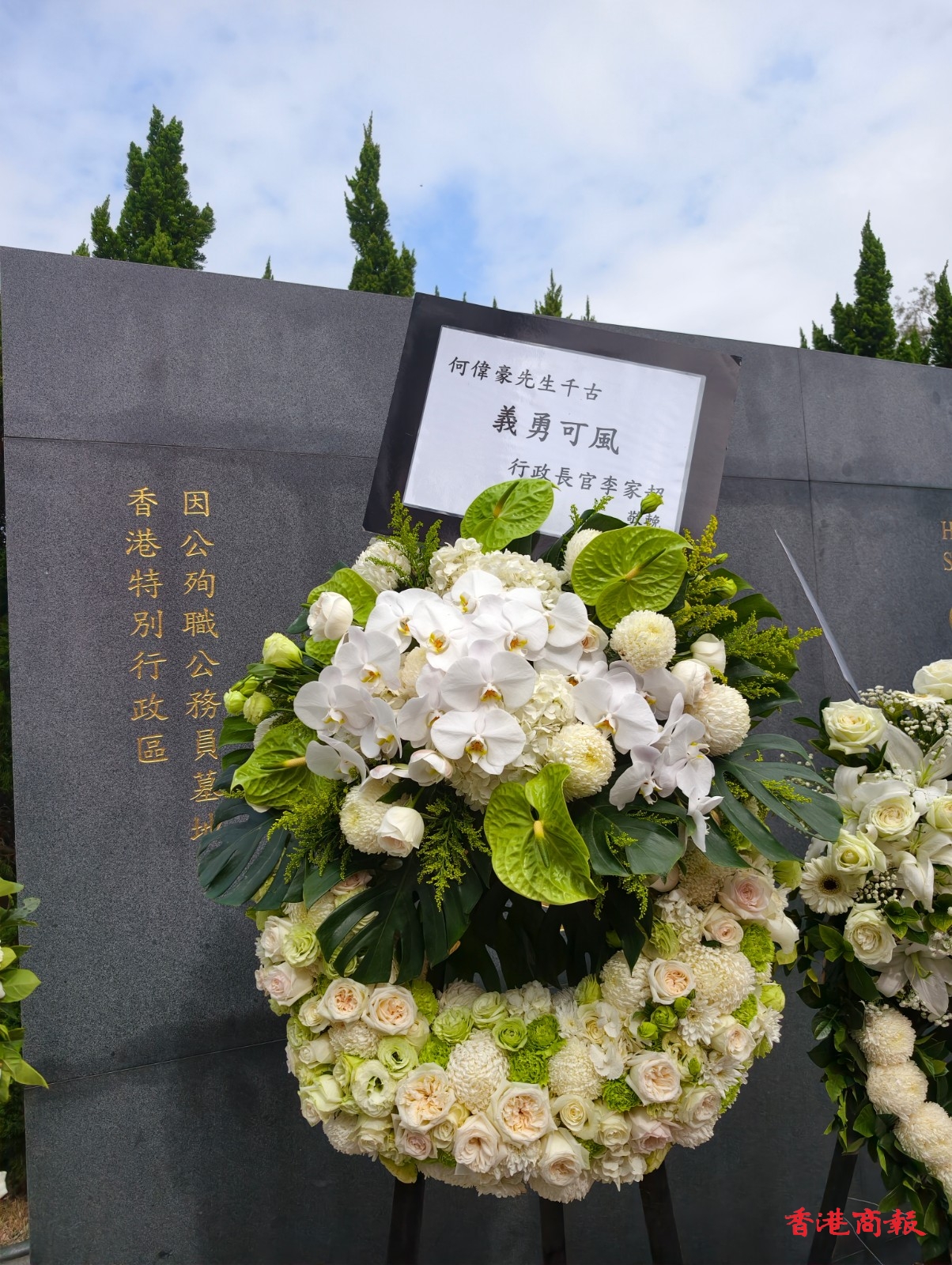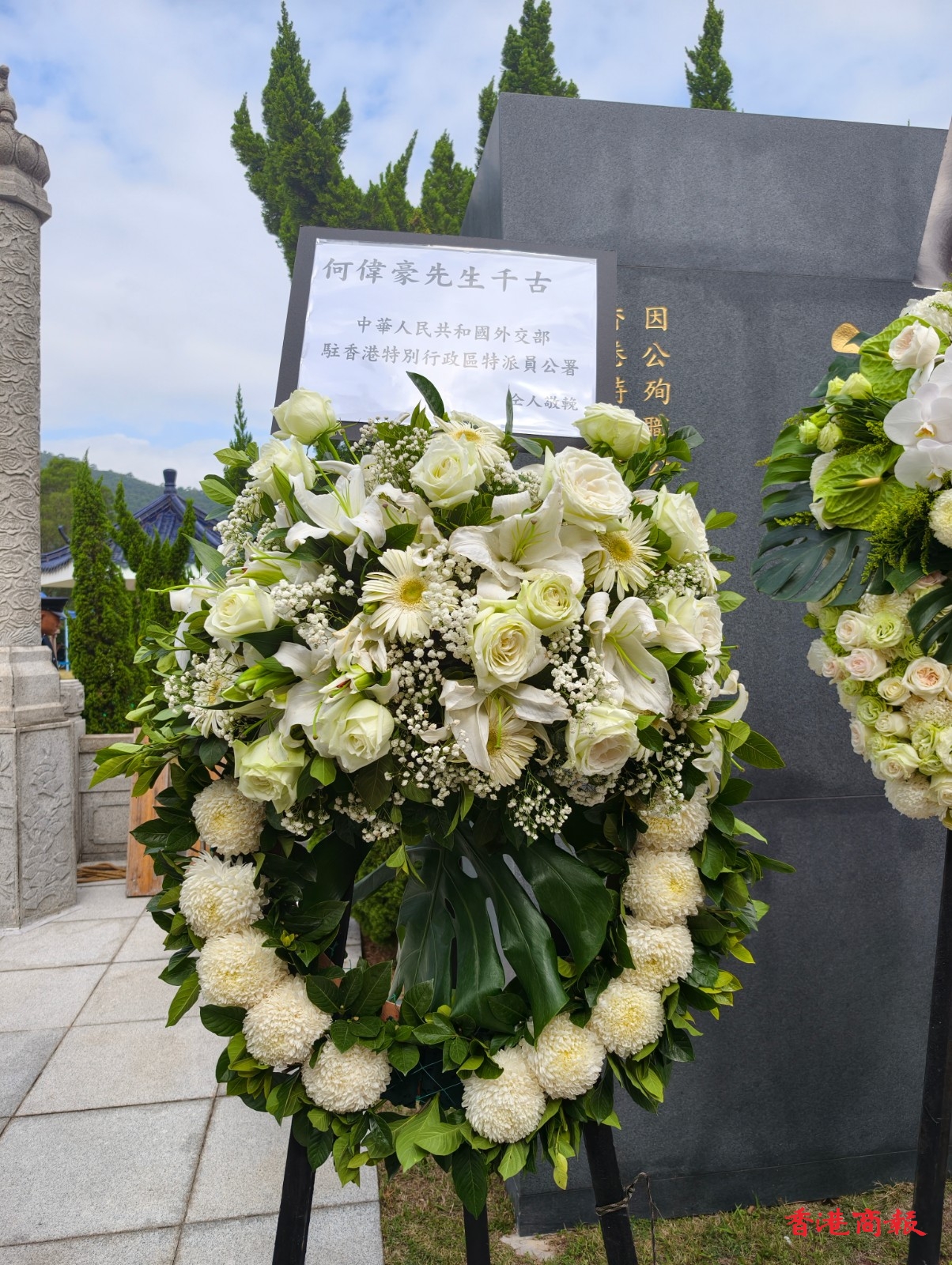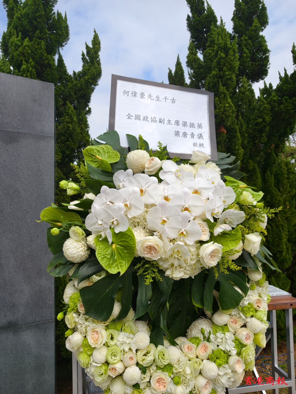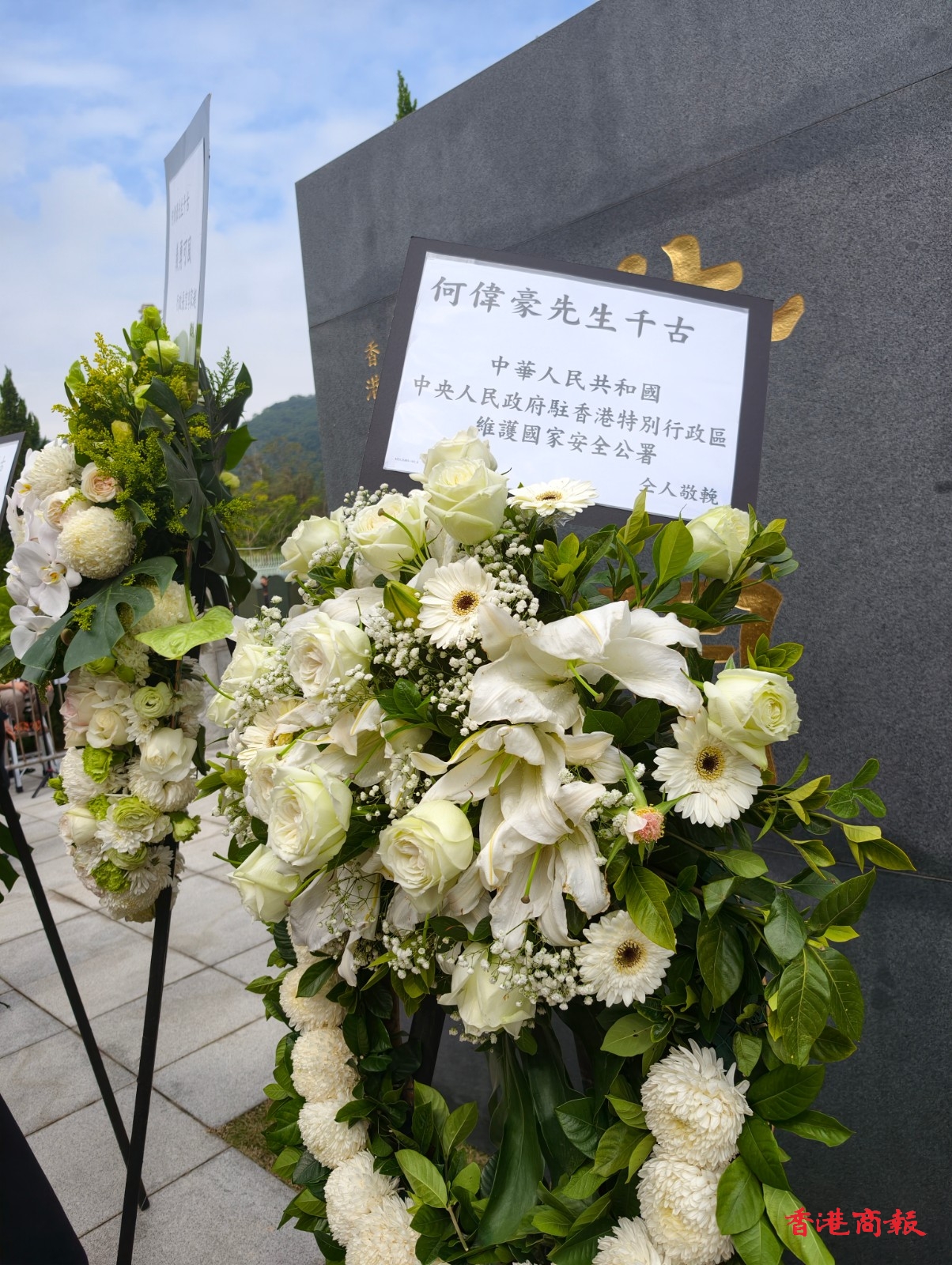 家人、政府官員及中央駐港機(jī)構(gòu)致送的花圈。