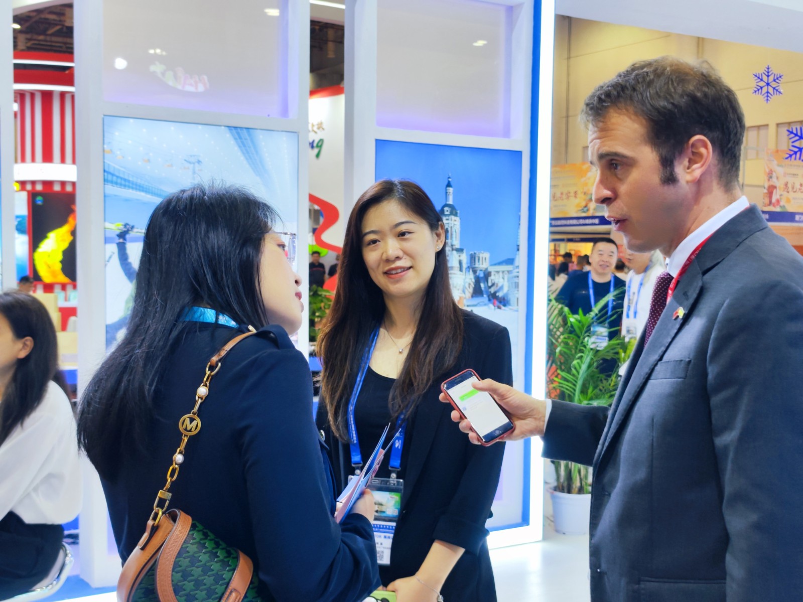 展會現(xiàn)場,龍江展位熱鬧非凡,現(xiàn)場觀眾絡(luò)繹不絕地前來參觀。觀眾們在展位前停留的時間較長,細細品味著展示的內(nèi)容,並用手機進行記錄和分享。他們紛紛掃碼關(guān)注我廳的微信公眾號、抖音視頻號等平臺,迫不及待地想要獲取更多的信息。領(lǐng)取黑龍江省特色宣傳品和紀念品,讓現(xiàn)場氛圍更加熱烈。各市(地)參會代表現(xiàn)場向公眾發(fā)放宣傳資料,展示具有地方特色的旅遊宣傳品、紀念品、文創(chuàng)工藝品和地方特色美食等,哈爾濱紅腸、黑河五大連池礦泉水及礦泉系列產(chǎn)品、老昌號冰花陶瓷、魚皮手工藝品等產(chǎn)品備受現(xiàn)場觀眾的矚目和喜愛。各隨團參展單位現(xiàn)場進行了洽談和對接,尋求進一步合作。